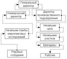 Исходя из приведенных определений следует, что в нашем примере имеет место не один информационный канал, а два: от рядовых сотрудников Службы маркетинговых исследований до Генерального директора и от Генерального директора к рабочим.