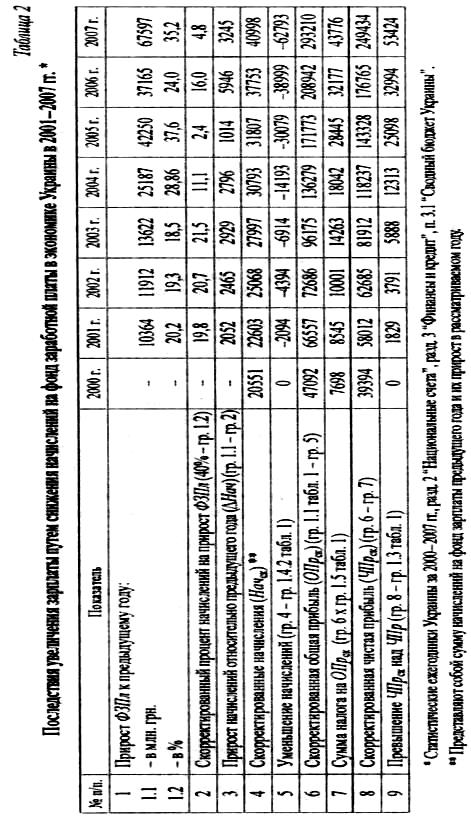 В выигрыше остается работодатель: его чистая прибыль, при прочих равных условиях, из года в год растет. Так, если в 2001 г. в результате внедрения этого механизма превышение чистой прибыли над фактической составило бы 3,3%, то в 2007 г. - 22%. Разумеется, такой подход нельзя применить, ибо сегодня и без того большие суммы средств направляются из бюджета в пенсионный фонд.Мы провели соответствующие расчеты по экономическим показателям Украины за 2001-2007 гг. Пропорции и темпы изменения анализируемых показателей дают основание для выводов о тех результатах, которых можно было бы ожидать от внедрения тех или иных предложений в 2001 г. Фактический фонд заработной платы рассматривается как сформировавшийся главным образом под влиянием рыночного спроса и предложения рабочей силы, с учетом выплат за текущие результаты труда.