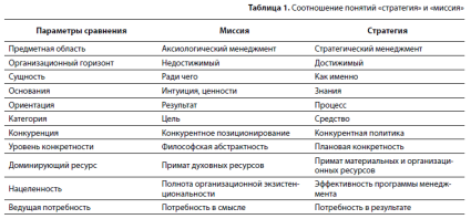 Таким образом, понятия «миссия» и «стратегия» различны, несмотря на то что оба относятся к области целеполагания и являются, соответственно, центральными понятиями аксиологического и стратегического менеджмента.