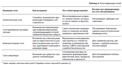 Наше понимание генезиса и классификации сетей [11] идет от понимания диалектической логики, функционального подхода (табл. 4).