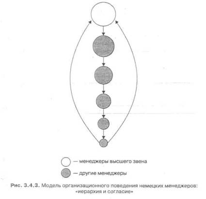 На сегодняшний день немецкие компании имеют традиционную малоподвижную структуру с обязательной и обособленной иерархией. Такие структуры в других странах считаются устаревшими и неэффективными. Но дисциплинированность и почитание вертикальных взаимоотношений в немецкой организации помогают преодолевать проблемы многоуровневой структуры (рис. 3.4.3).