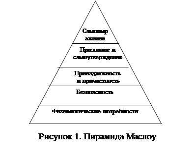 В соответствии с этой концепцией люди постоянно испытывают различные потребности, которые можно объединить в группы находящиеся в иерархическом отношении друг к другу. Маслоу выделил пять таких групп и расположил их в виде структуры графически изображаемой как пирамида. Она показана на рис.1[2]