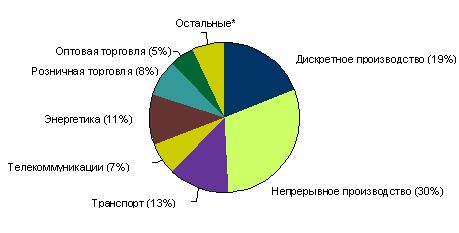 Если проследить распределение внедренных корпоративных систем по отраслям и секторам экономики, то в России, картина выглядит следующим образом: