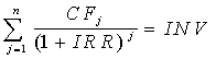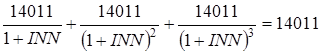 где CFj - входной денежный поток в j-ый период, INV - значение инвестиции. Строго говоря, этот коэффициент дает не столько расчет, сколько уравнение, решив которое, найдем норму доходности INN , минимально необходимую для реализации проекта. Для нашего проекта имеем следующее уравнение: