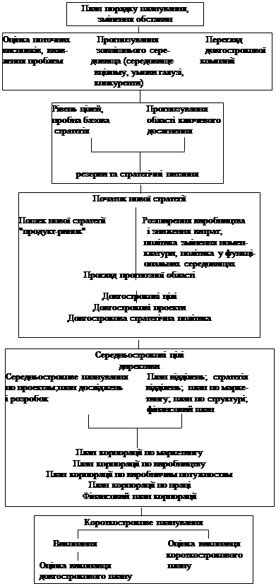 Планування – це процес практичного втілення стратегії. Він заключається у прийнятті конкретних рішень, що дозволяють забезпечити ефективне функціонування та розвиток організації в майбутньому, зменшити їх невизначеність. Так як, такі рішення впливають одне на одного, вони мають потребу у взаємному пов’язанні.