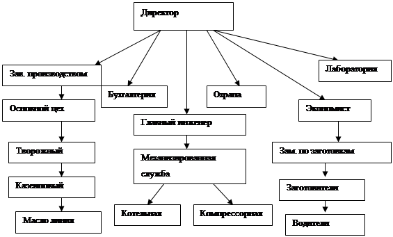 управления основными связующими звеньями являются: 1. Отдел по производству, где особое внимание уделяется контролю за основным производственным цехом по производству творога, казеина и масла;