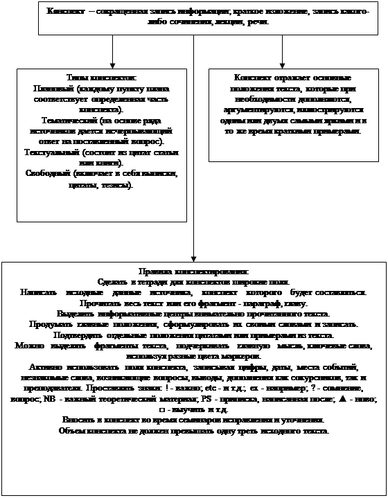 Информация, полученная в процессе чтения различных источников, предназначается для дальнейшего использования в курсовой работе в качестве цитат и рабочих материалов. Для этого ее фиксируют, делают разного вида записи (выписки, план, тезисы, аннотации, конспект и др.) (Приложение 4). Успешность выполнения работы зависит от грамотного составления плана работы.