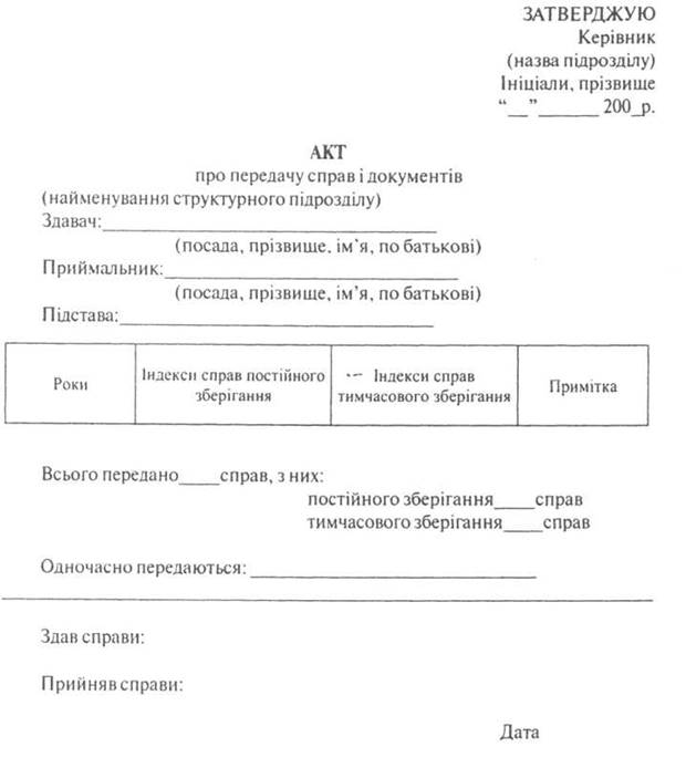 - формування закінчених діловодством документів у справи та передача їх до архіву на зберігання;