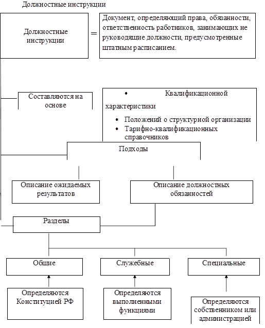 Должностная инструкция разрабатывается исходя из функций и задач структурного подразделения организации с учетом требований, предусмотренными квалификационными справочниками. Должностная инструкция является обязательным документом, разрешающая одну из проблем эффективного управления организацией. Правила внутреннего трудового распорядка разрабатываются с действующим законодательством, а также по соглашению сторон (работник, работодатель).