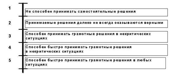 Шкала рейтингов поведенческих установок напоминает метод описательной шкалы, с той лишь разницей, что показатель оценивается не по качественным характеристикам, а по предлагаемым ситуациям управленческой деятельности (пример на рис. 2.48).