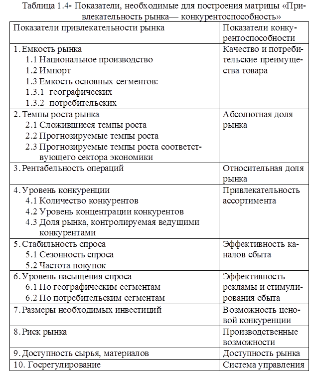 – Матрица «привлекательность рынка — конкурентоспособность предприятия»;