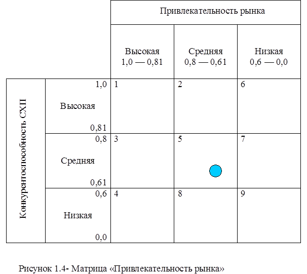 5) Следующий этап состоит в оценке перспектив рентабельности для СХП предприятия с учетом его маркетинговых преимуществ давления конкурентов. Эти данные вносятся в соответствующую таблицу 1.3.