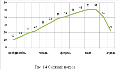 Величина снежного покрова не всегда благоприятствует посевам озимых, очень часто морозы начинаются когда еще толщина снежного покрова не достигла необходимой величины, для того чтобы не повредились всходы озимых культур (рис. 1.4).