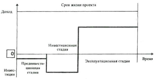 В связи с тем, что временной фактор играет ключевую роль в оценке инвестиционного проекта, целесообразно представить весь цикл проекта в виде графика (рис. 1).