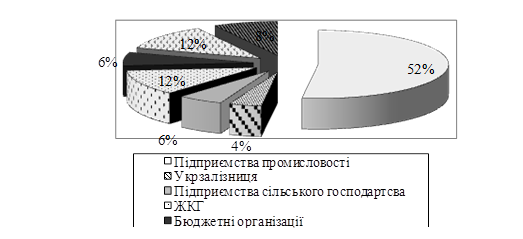 Взаємодія організації із зовнішнім середовищем досить складний процес чим динамічніше навколишнє середовище, тим сутужніше враховувати різні її прояви. ТОВ «Луганське енергетичне об'єднання» забезпечує електроенергією споживачів, серед яких підприємства металургійної, хімічної, машинобудівної й вугільної промисловості (рис. 2.). Кількість побутових абонентів перевищує один мільйон.