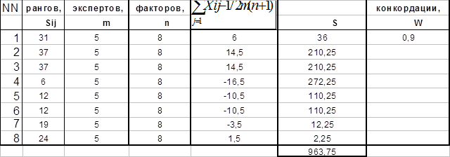Необходимо проранжировать эти факторы, т.е. расположить их в порядке убывания влияния на себестоимость. Количество специалистов, принимающих участие в экспертизе, равно пяти. Компетентность их равнозначна.