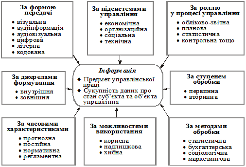 Рис. 1. Класифікація інформації, яка використовується у процесі управління організацією
