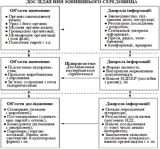 Наявні інформаційні системи надають керівникам підприємств інформацію, що зорієнтована в основному на внутрішнє середовище — технологію, організацію виробництва, фінансово-економічні ретроспективні показники тощо — і характеризує його. Інформація про зовнішнє середовище має фрагментарний, несистемний характер. Немає інформації про економічні тенденції, науково-технічні досягнення, ринки та конкуренцію на них, споживачів та їхні потреби тощо. До того ж бракує соціально-політичної інформації, збиранням і аналізом якої навіть науково-дослідні інститути займаються мало. Усе це призводить до домінування суб’єктивних уявлень про ситуацію на підприємстві та поза ним, що не дає змоги складати обґрунтовані прогнози та приймати стратегічні рішення про пристосування до майбутнього та формування самого майбутнього.