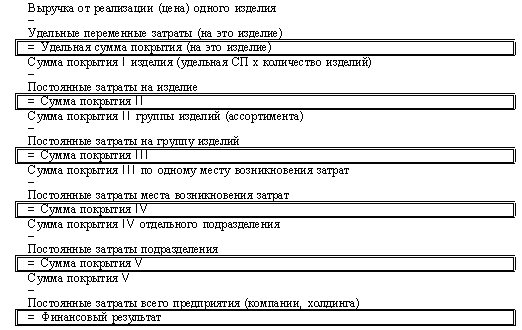 4) показатели разных уровней сумм покрытия обеспечивают соответствующую оценку изделий, территорий реализации, групп покупателей и др.;