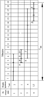 АБ(=АА), ВГ (равное А'Б'), ДЕ – время последующей операции, перекрываемое временем предыдущей операции.