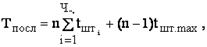 – время выполнения операции, самой продолжительной в технологическом процессе (мин); tштi – норма времени на выполнение i-й операции (мин); n – количество деталей в производственной партии (шт);