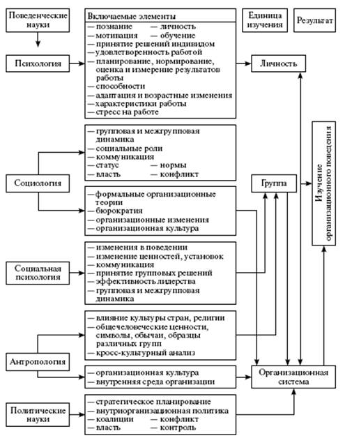 Организационное поведение тесно связанно с такими поведенческими науками, как психология, социология, политическими науками и другими (Рис. 1).