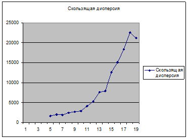 Данный график скользящей дисперсии говорит о продолжительной смене тенденции изменения параметров процесса.