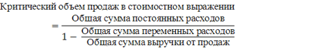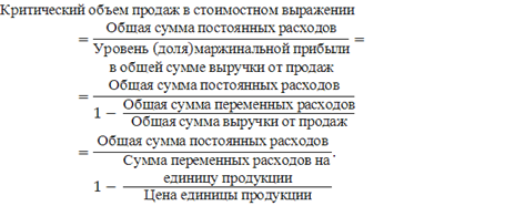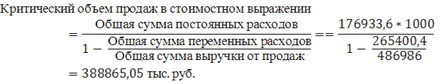 Теперь рассчитаем общую величину объема производства и реализации, при котором возможен рассмотренный критический (предельный) объем производства и реализации.