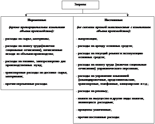 Затраты предприятия, включаемые в себестоимость продукции, можно подразделить на две части: постоянную и переменную. Такое деление определяется характером изменения затрат при изменении объема производства.
