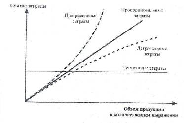 К переменным относятся затраты, величина которых изменяется с изменением объема производства продукции. В основном это затраты на сырье, материалы, топливо и электроэнергию на технологические цели сдельная заработная плата производственных рабочих с соответствующими отчислениями во внебюджетные государственные фонды. В зависимости от соотношения темпов роста объема производства и различных переменных затрат последние подразделяются на пропорциональные, прогрессивные и дигрессивные. Но в среднем переменные расходы изменяются пропорционально изменению объема производства продукции.