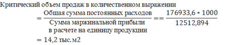 Таким образом, критический объем реализации уменьшился по сравнению с предыдущим расчетом на 3574,8 м2