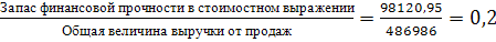 Кроме того важно заметить, что увеличение доли запаса финансовой прочности в стоимостном выражении в общем объеме производства и реализации ведет к снижению критического уровня объема производства и реализации продукции и СМР.