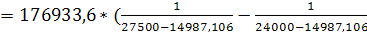 )=17708,582*(27500-24978,51)=44652012,43 руб.