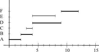 Как видим на диаграмме Гантта на критическом пути лежат работы A, B, D, F. Продолжительность критического пути 12 дней.
