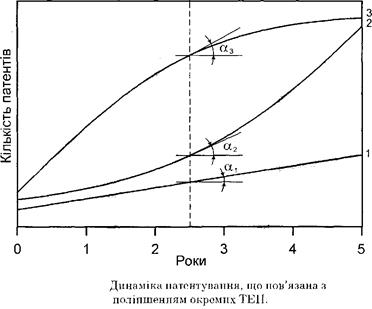 Далі для кожного з виявлених ТЕП продукції складають динамічні ряди патентування винаходів.