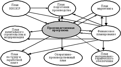 Рис. 1. Взаимосвязь производственной программы с другими планами