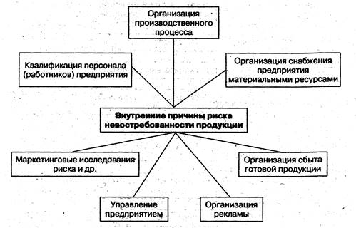 Риск невостребованности продукции возникает вследствие отказа потребителя от приобретения произведенной продукции. Риск характеризуется величиной возможного экономического и морального ущерба понесенного производителем по этой причине. Причин возникновения риска невостребованности произведенной продукции может быть много, но, как правило, они взаимосвязаны и взаимообусловлены. Эти причины по условиям возникновения можно разделить на внутреннне и внешние.