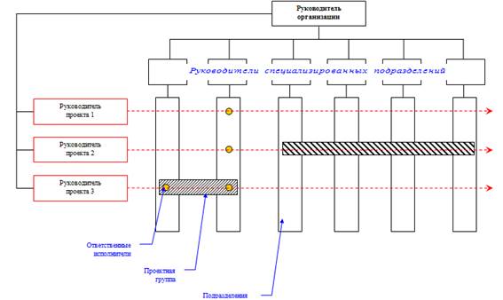 В матричной организации одинаковую роль играют два организационных принципа. В классификации Х. Минцберга выделяются три промежуточные организационные формы, которые характеризуются: