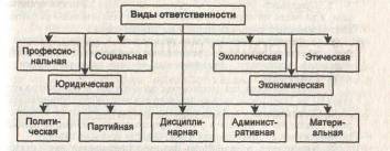 Многообразие сфер деятельности компаний сформировало следующий типовой набор видов ответственности: профессиональная, юридическая (в том числе уголовная), социальная, экологическая, экономическая, этическая, политическая, партийная, дисциплинарная, административная, материальная (рис. 7.1).