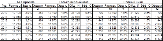 The net present budget is about 2,4 – 2,6 mln. rubles till the end of 2011 year. The estimate effect, under the mentioned set of conditions and assumptions, is about 3.3 mln. rubles. Payback period is 4 years.