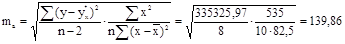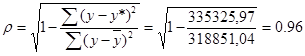 – гипотеза о случайной природе оцениваемых характеристик отклоняется и признается их статистическая значимость и надежность. Cредняя ошибка аппроксимации А=11,92%.