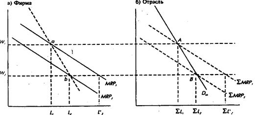 Таким образом, в долгосрочном периоде объем спроса на труд определяется условием равенства отношения предельного продукта труда к предельным издержкам труда и отношения предельного продукта капитала к предельным издержкам капитала.