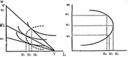 Так как функция спроса на труд – производная функции предложения товаров, то функция спроса на труд — убывающая.