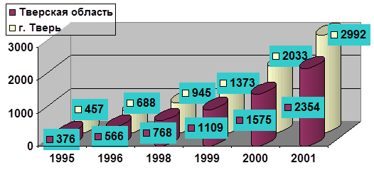 Тверь в цифрах. Тверской областной комитет по статистике. – Тверь. – 2001.-С. 23