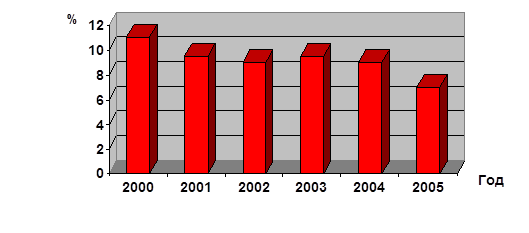 Как видно из рисунка 1, безработица в России в 2005 году существенно снизилась с 9% в 2004 году до 7,5%. Это средние показатели, если сравнивать Россию с остальным миром. Безработные получают пособия. В нашей стране существует следующая система пособий по безработице: рабочие имеют право на 75% их предыдущей месячной заработной платы на первые три месяца безработицы, затем пособие снижается до 60% далее еще - до 45% на период до 12 мес. При этом пособия по безработице не могут быть ниже минимальной заработной платы.