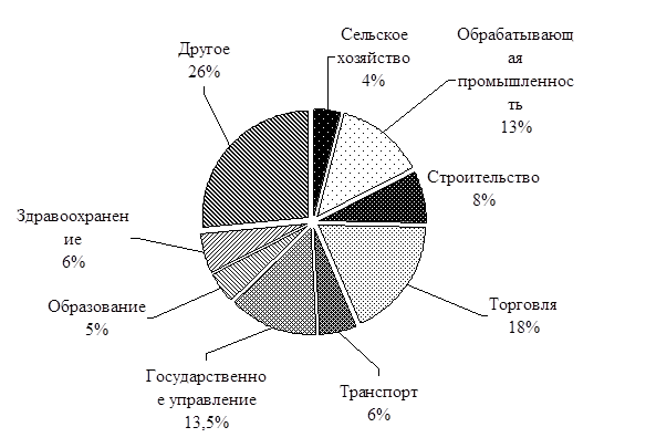 Рисунок 3 - Распределение рабочей силы по отраслям в 2005 году