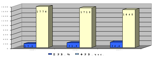 Анализ использования трудовых ресурсов в рамках данного предприятия показал, что имеющиеся трудовые ресурсы используются недостаточно полно. В среднем одним рабочим в отчетном году отработано 206 дней. Потери рабочего времени в среднем на одного рабочего на конец отчетного периода составили 24,4% общего фонда рабочего времени и имеют тенденцию роста. Одной из причин потерь рабочего времени являются целодневные и внутрисменные 192372 ч., в общей структуре ПРВ они составили 10,2%.