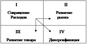 Для условий растущего рынка используют подход, который предложил Игорь Ансофф. Сущность подхода иллюстрирует матрица общий вид которой изображен на рис.2. [2]