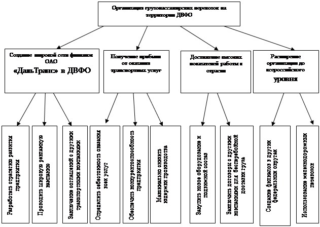 Как было указано ранее, основными стратегическими целями компании является: создание широкой сети филиалов ОАО "ДальТранс" в ДВФО; достижение высоких показателей работы в отрасли; расширение организации до всероссийского уровня.