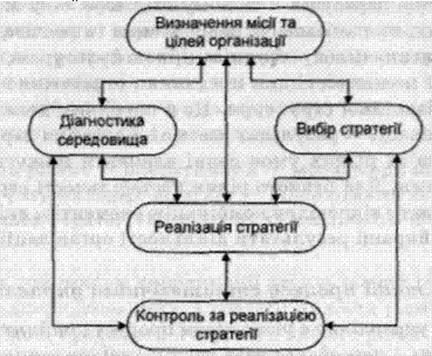 Стратегічне управління базується на вивченні відносин, які можна охарактеризувати за допомогою системи «середовище - організація». Більшість серед існуючих сьогодні концепцій управління розглядає організацію як відкриту систему, котра постійно взаємодіє з окремими елементами зовнішнього середовища: іншими організаціями, банками, організаціями, що належать до соціально-політичних та економічних інституцій держави, місцевих органів тощо і дає змогу організаціям підтримувати більш-менш стійке становище, виживати в умовах, що постійно змінюються.